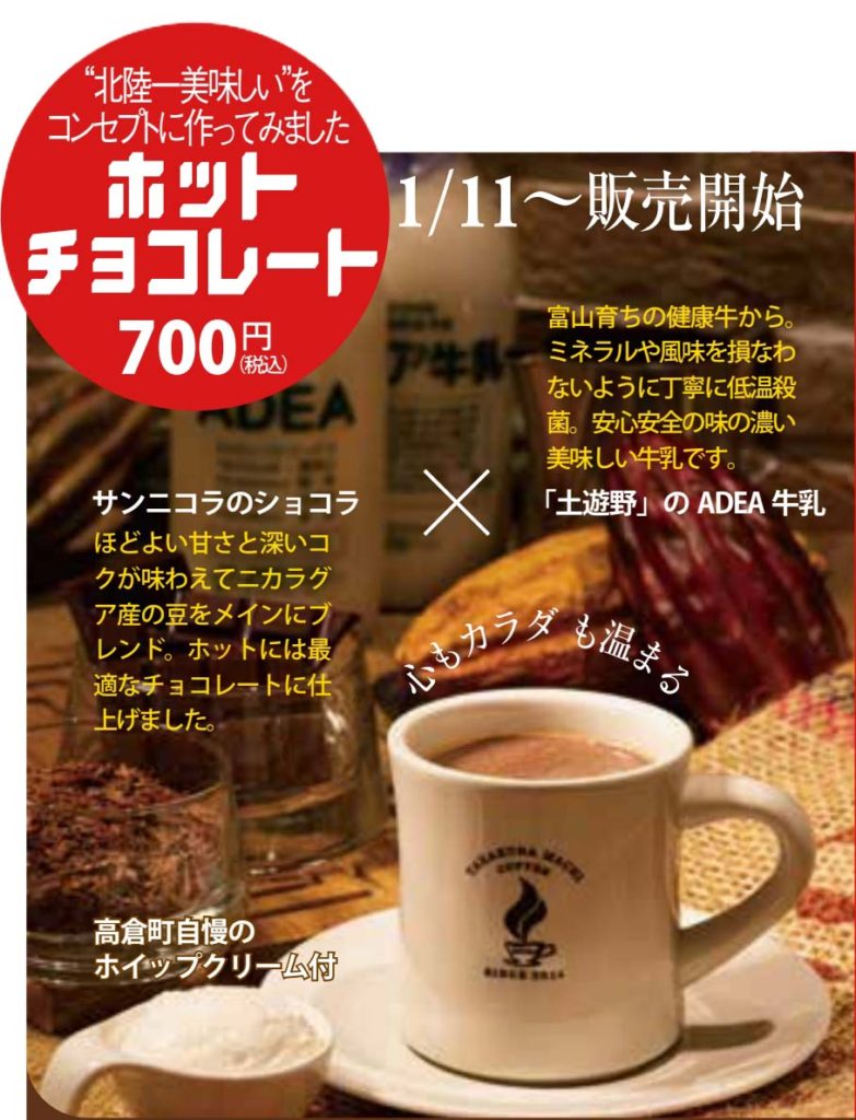 今回は、サンニコラのショコラと土遊野のアデア牛乳を使ったホットチョコレートドリンクです。