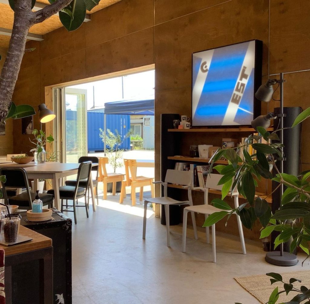富山市西長江にある、コンテナのような個性的な外観が特徴のカフェです。