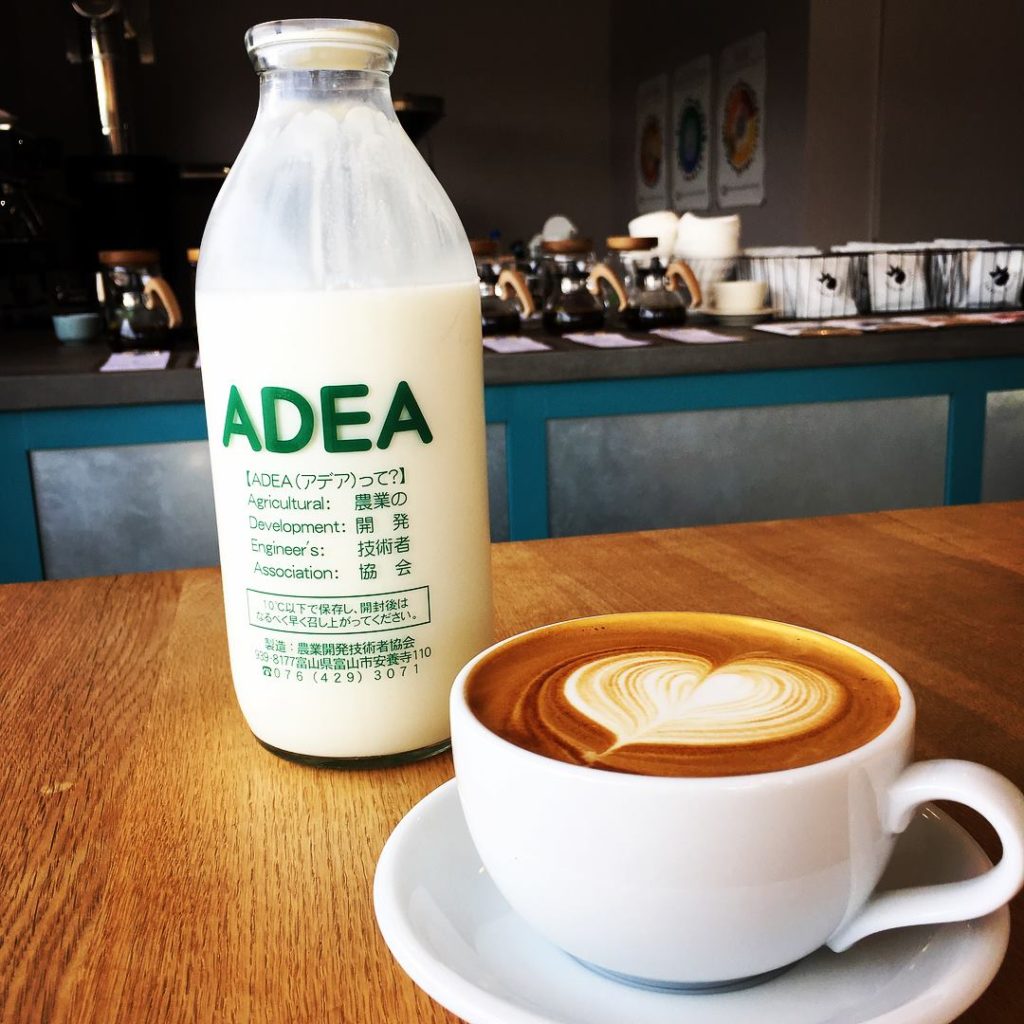 ここでは、アデア牛乳のカフェラテをお楽しみいただけます。