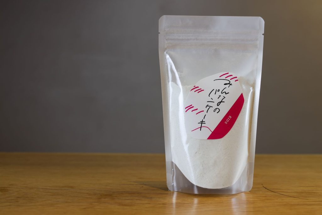 土遊野産有機棚田米の米粉と、お子様が食べやすようにスタンダードより細かなダイシもち麦粉を入れたパンケーキミックスです。