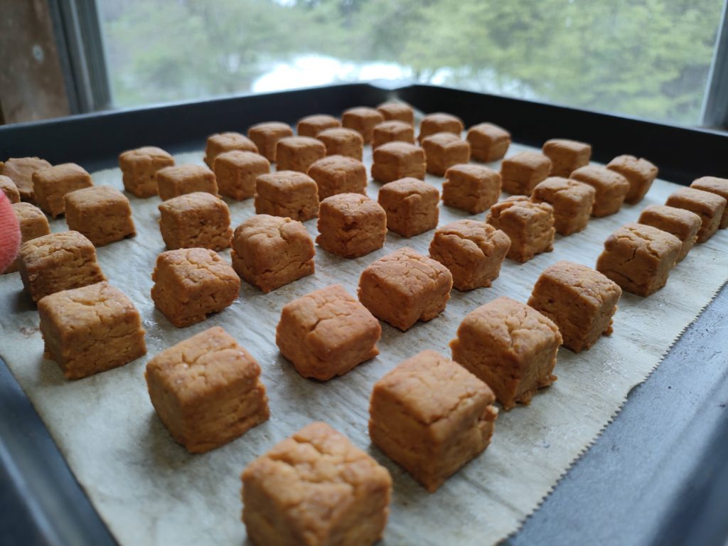今月から、かわいい小粒キューブ型の米粉クッキーが新登場!米粉を使用しているので、しっとりした食感に加えて、きな粉の香ばしさが香るクッキーです。