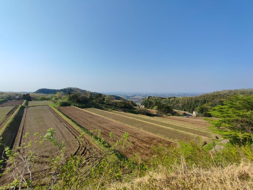 5月、土遊野の棚田や麓の田んぼには水が入り始め、とても美しい風景になります。棚田から平野を見渡すとそちらにも街を囲む水田に水が張られ、田植えをしてもまだ苗も小さいので、街が水に浮かんだように見えます。