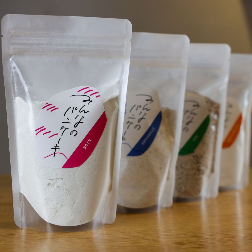 土遊野の有機棚田米とダイシもち麦のみを使った安心安全なパンケーキミックス。タイプの異なる4種があり、子供たちのおやつや、お食事、大人のおつまみにして子供から大人まで楽しめます。