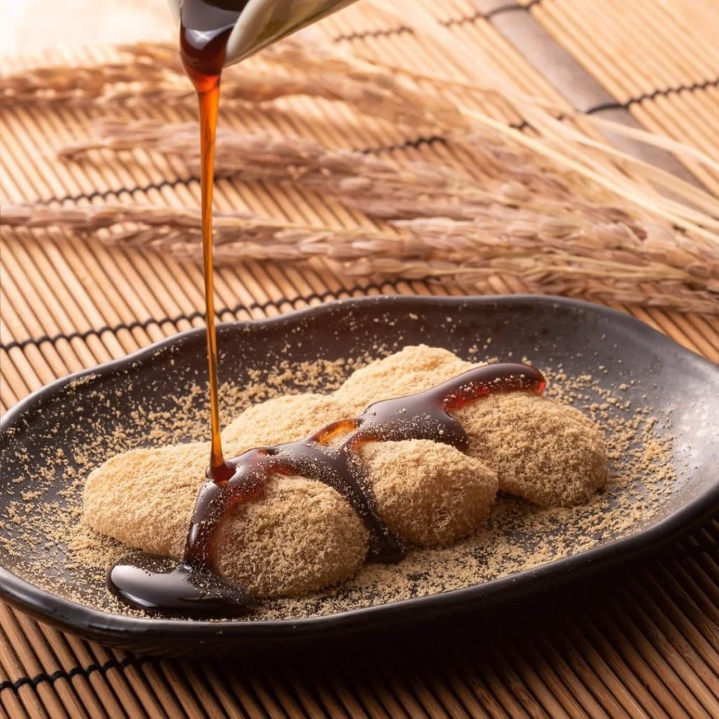 富山の和菓子屋凜やさんのきな粉餅とかりんとう饅頭に、土遊野産艶麗大豆のきな粉と有機棚田米新大正もち米を使用していただいています。