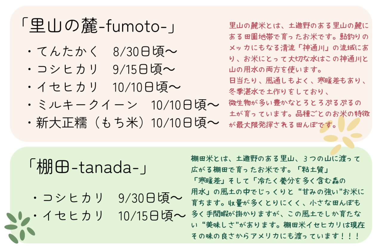 土遊野では、今年も「里山の麓-fumoto-」と「棚田-tanada-」の